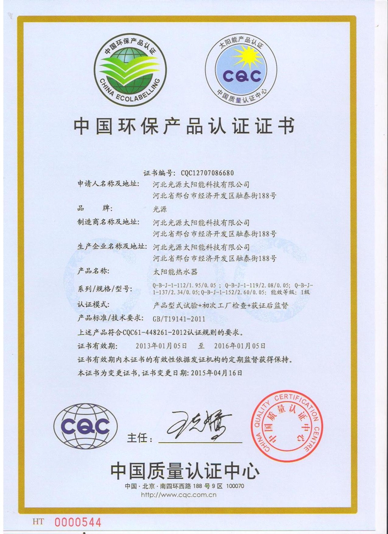 中國環(huán)保產(chǎn)品認(rèn)證證書