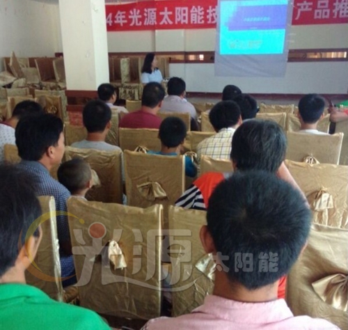 2014年8月20日河南夏邑縣光源太陽能技術(shù)培訓(xùn)及產(chǎn)品推介會隆重召開。本次會議圍繞“互聯(lián)網(wǎng)時代話光源招商之饑餓營銷”為切入點(diǎn)進(jìn)行了為時90分鐘的培訓(xùn)。
