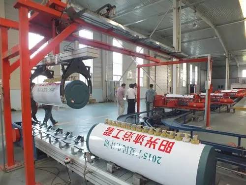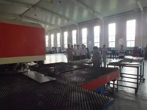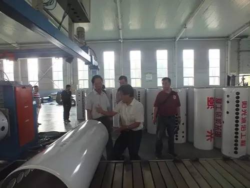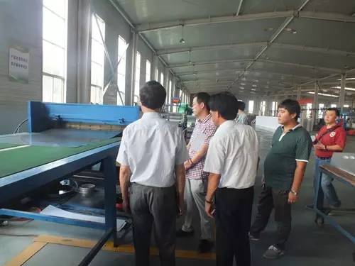 在參觀完太陽能真空集熱管制造車間后又到了太陽能工程設備總裝車間,先后參觀了全自動下料開平設備、轉塔式全自動數控沖床生產線、全自動外皮雙頭縮口滾花機、臥式反向積放發(fā)泡生產線、環(huán)戊烷聚氨酯高壓發(fā)泡機、全自動數控打包生產線以及壁掛太陽能生產線等等。