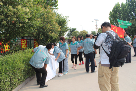 圖四:(員工在創(chuàng)城長卷簽字留念)