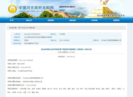 中標(biāo)2019年邢臺(tái)經(jīng)濟(jì)開發(fā)區(qū)燃?xì)獗趻鞝t采購(gòu)項(xiàng)目(留村鎮(zhèn))!![]()