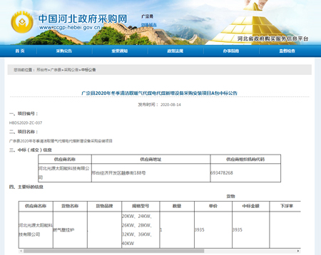 廣宗縣2020年冬季清潔取暖氣代煤電代煤新增設(shè)備采購安裝項目